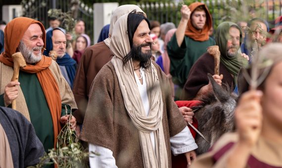 Em Domingo de Ramos, Santa Maria da Feira acolhe com alegria Jesus, na recriação da Entrada Triunfal de Jesus em Jerusalém. Com ramos de oliveira, benzidos no início desta procissão e recriação, assinala-se o dia em que Jesus entrou em Jerusalém montado num jumentinho e as multidões saíram para recebê-lo. Aqui se recorda as aclamações e os gestos das crianças hebraicas que foram ao encontro de Jesus com o canto do “Hossana”.